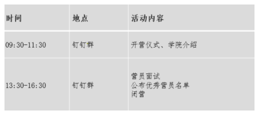 2、资格审核:7月19日由学院确定入选名单,请及时登录申请系统查询。入选营员须在7月20日前加入我院夏令营钉钉群,逾期未加入视放弃此资格。