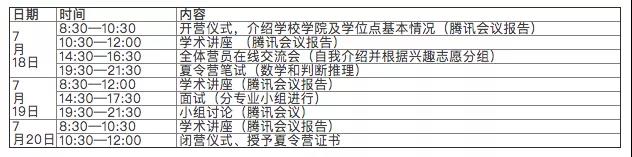 审核时间:2020年7月13日学院电话或QQ确认营员资格;